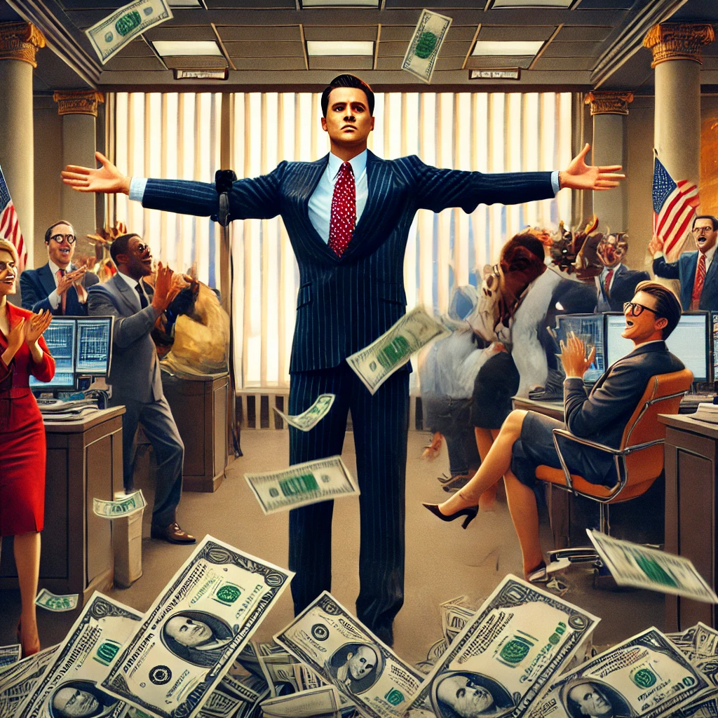 영화는 **돈이 인간을 어떻게 변화시키는지** 적나라하게 보여줍니다. 조던 벨포트는 **탐욕과 욕망의 화신**이지만, 아이러니하게도 그는 **돈을 벌고 싶어 하는 사람들의 우상이 되기도 했습니다.**