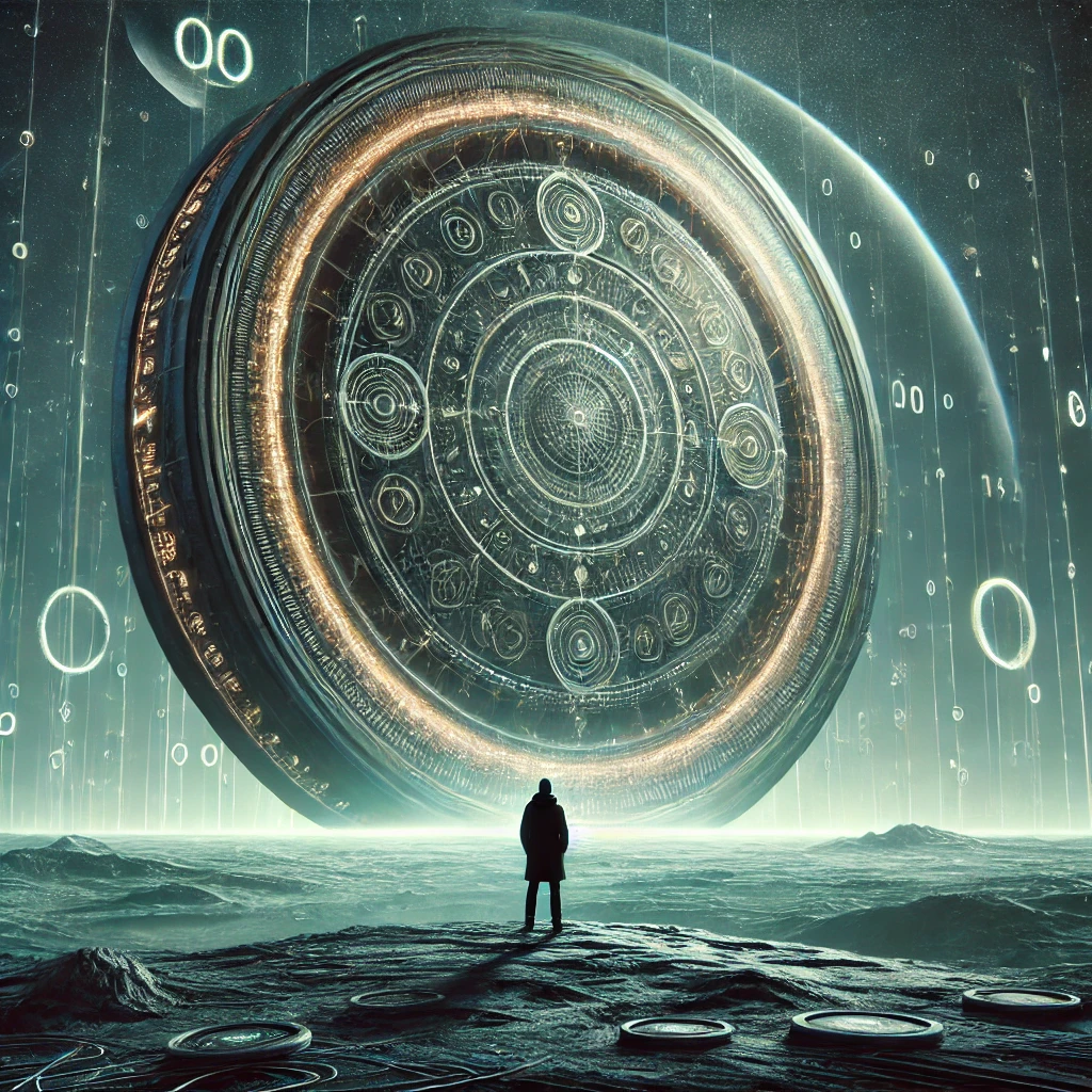 루이스는 헵타포드가 사용하는 **순환형 문자**를 해석하기 시작하며, 그들의 언어가 **시간을 비선형적으로 인식하는 방식과 연결되어 있음**을 깨닫습니다.